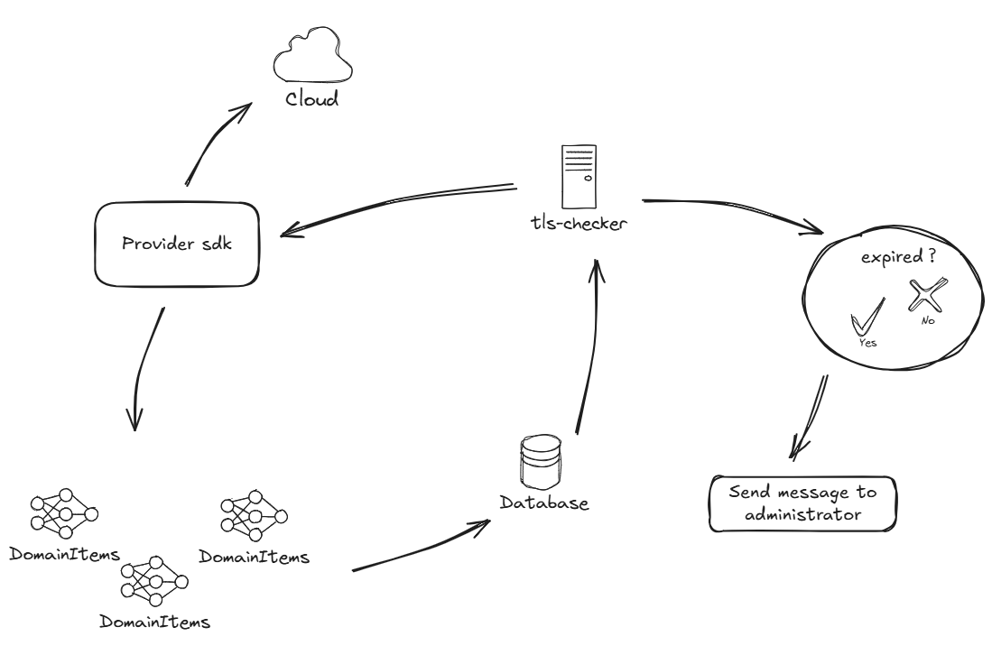 为了解决证书过期经常没法及时更换的问题,我们针对各个不同的厂商,抽象出一个接口,每个厂商的 sdk 根据这个接口去实现域名列表获取,域名解析遍历获取,入库,便于后续其他操作。
