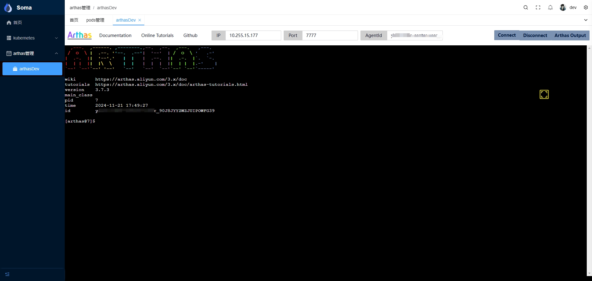 arthas 虽然提供了便捷的访问控制台,但是他有2个地方比较麻烦,一个是他没有权限控制,一个是要在 pod 里面去执行,让 agent 连接到 arthas ,这就比较让人头疼了,因为平常肯定不会把进入容器的权限给到开发,我们也不可能每次都帮开发进去里面执行指令,不然他每次重新发版都要给他执行一次就很麻烦,于是我们就需要一个平台来对接 pod 和 arthas。
