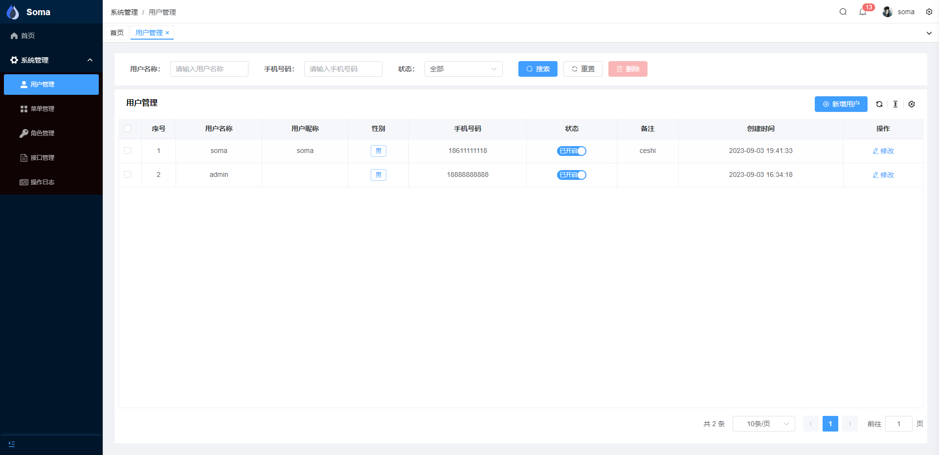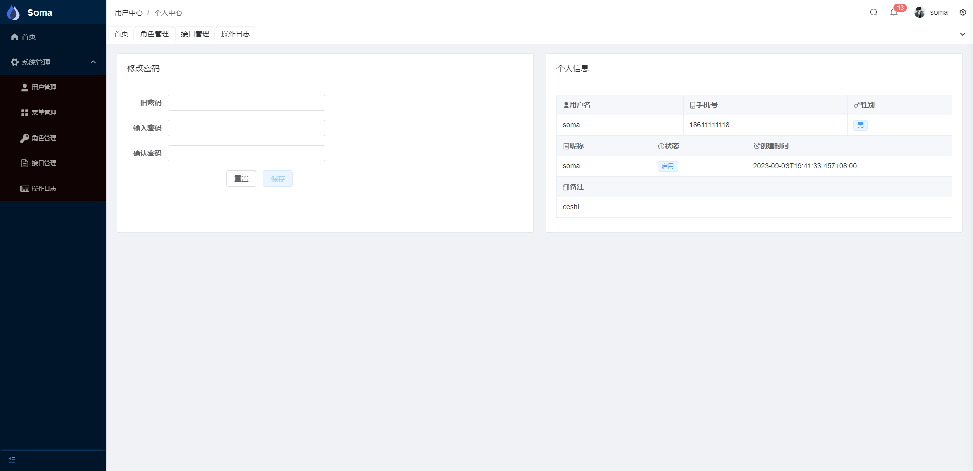 用户管理:提供用户的相关配置,目前用的通用的内置用户(由于是个人业余时间开发,时间有限,后期再支持 ldap 登录)。