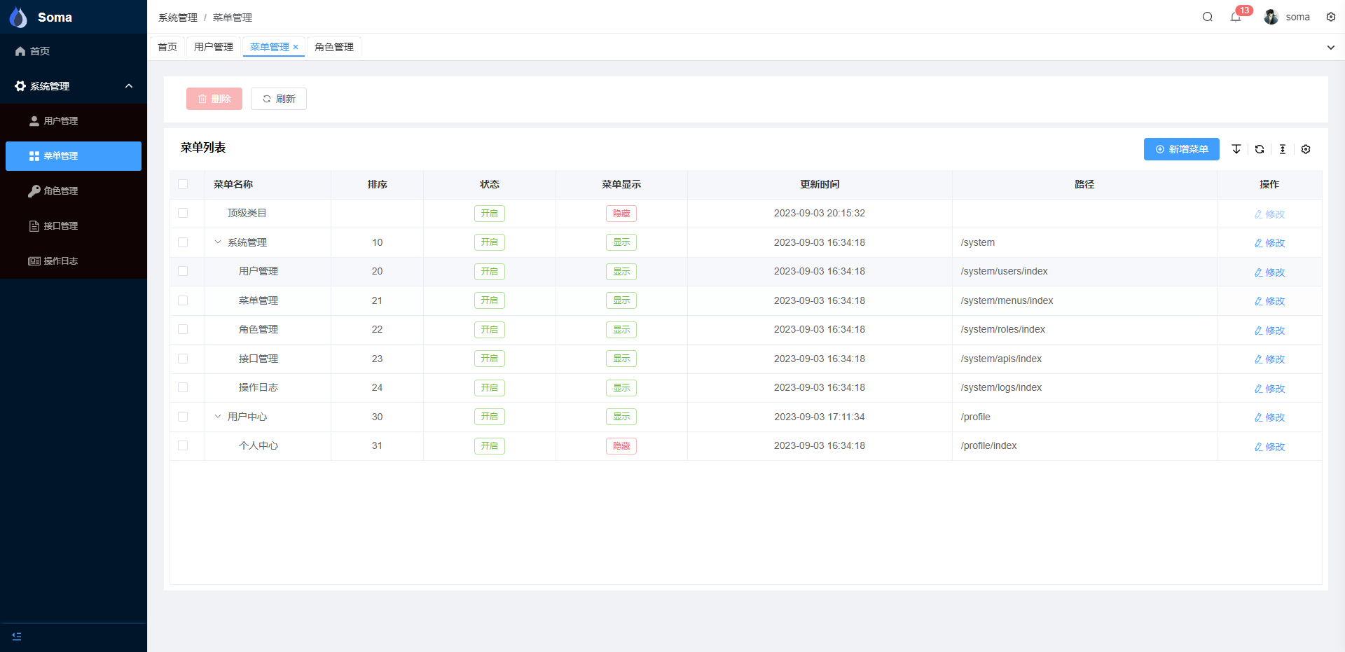 菜单管理:已实现菜单动态路由,后端可配置化。