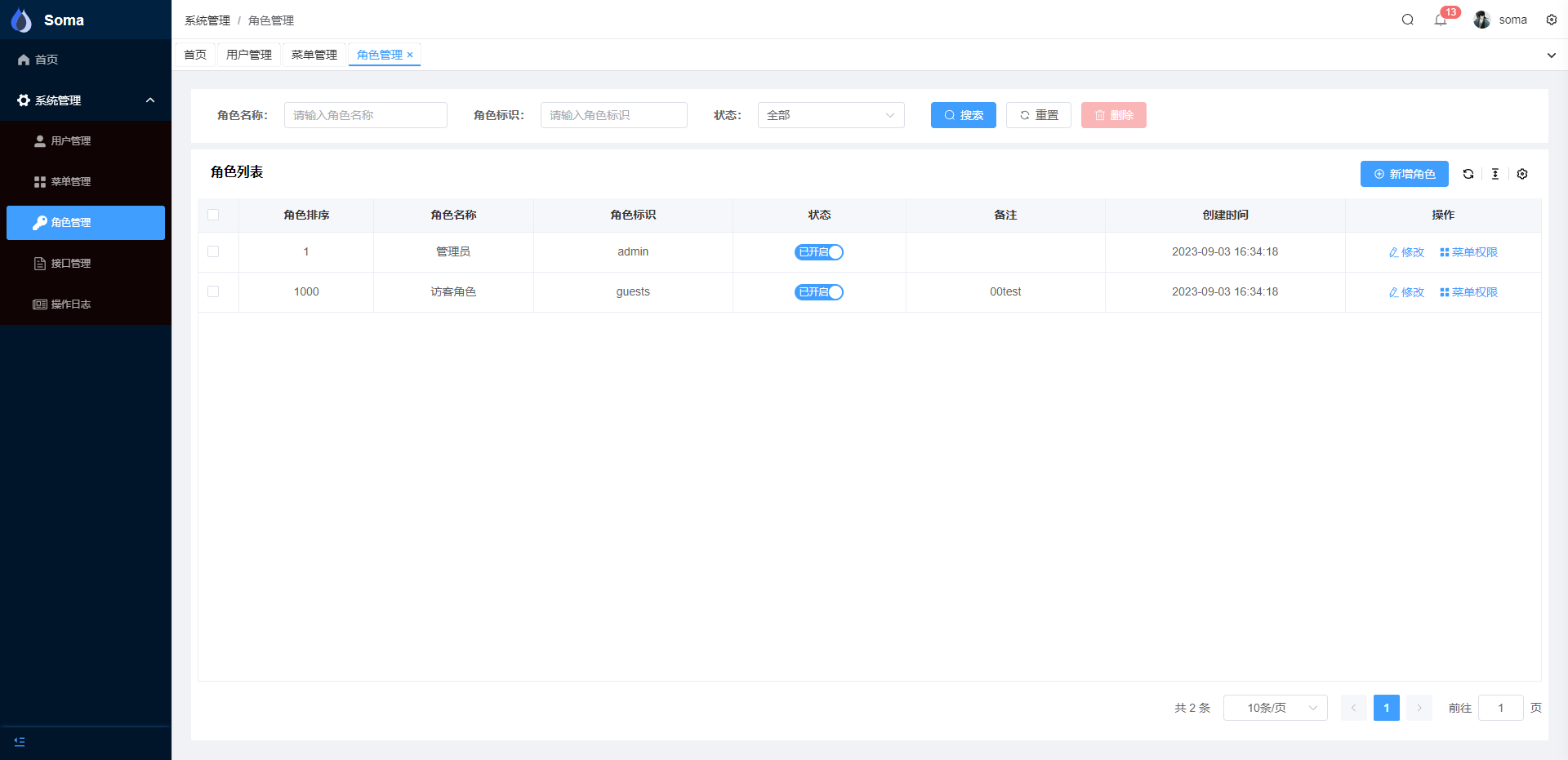 其他逻辑都比较好些,主要是角色管理这一块,一开始我的后端代码是拿别人的套用的,但是它角色管理有点鸡肋,多了个角色等级。