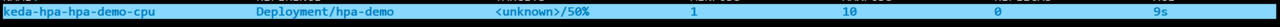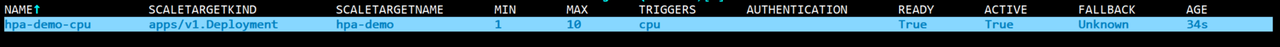 apiVersion:keda.sh/v1alpha1kind:ScaledObjectmetadata:name:hpa-demo-cpunamespace:defaultspec:scaleTargetRef:name:hpa-demominReplicaCount:1maxReplicaCount:10triggers:- type:cpumetricType:Utilization# Allowed types are 'Utilization' or 'AverageValue'metadata:value:"50"