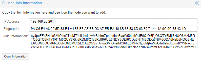 After clicking the Join button, the cluster join process will start immediately. After the node has joined the cluster, its current node certificate will be replaced by one signed from the cluster certificate authority (CA). This means that the current session will stop working after a few seconds. You then might need to force-reload the web interface and log in again with the cluster credentials.